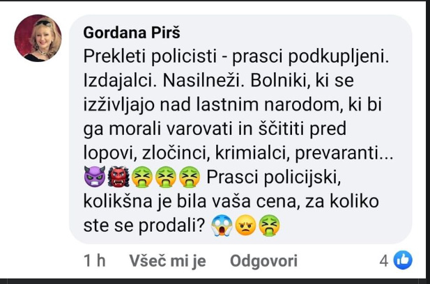 Na zadnjem petkovem protestu pa je »povsem izgubila pamet« ” in prostaško, primitivno, za uslužbenko CSD povsem neprimerno, napadla policijo in policiste.
